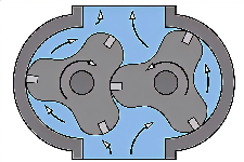 The image shows a lobe pump which used on our rotory pump filling machine.